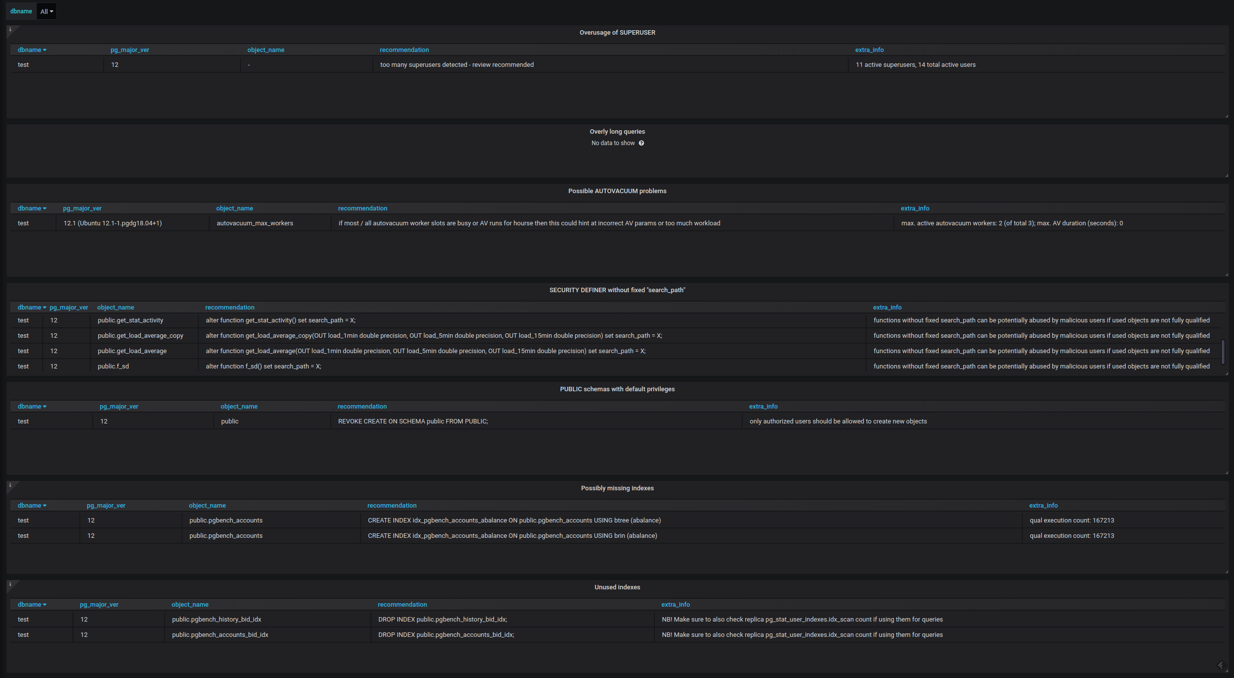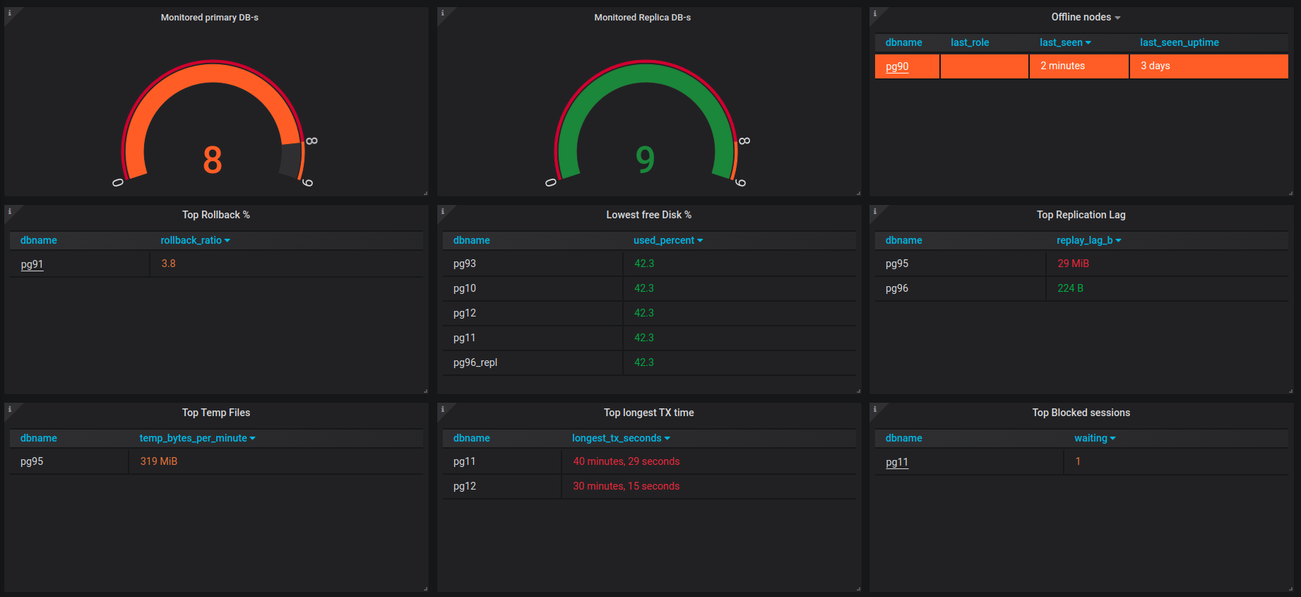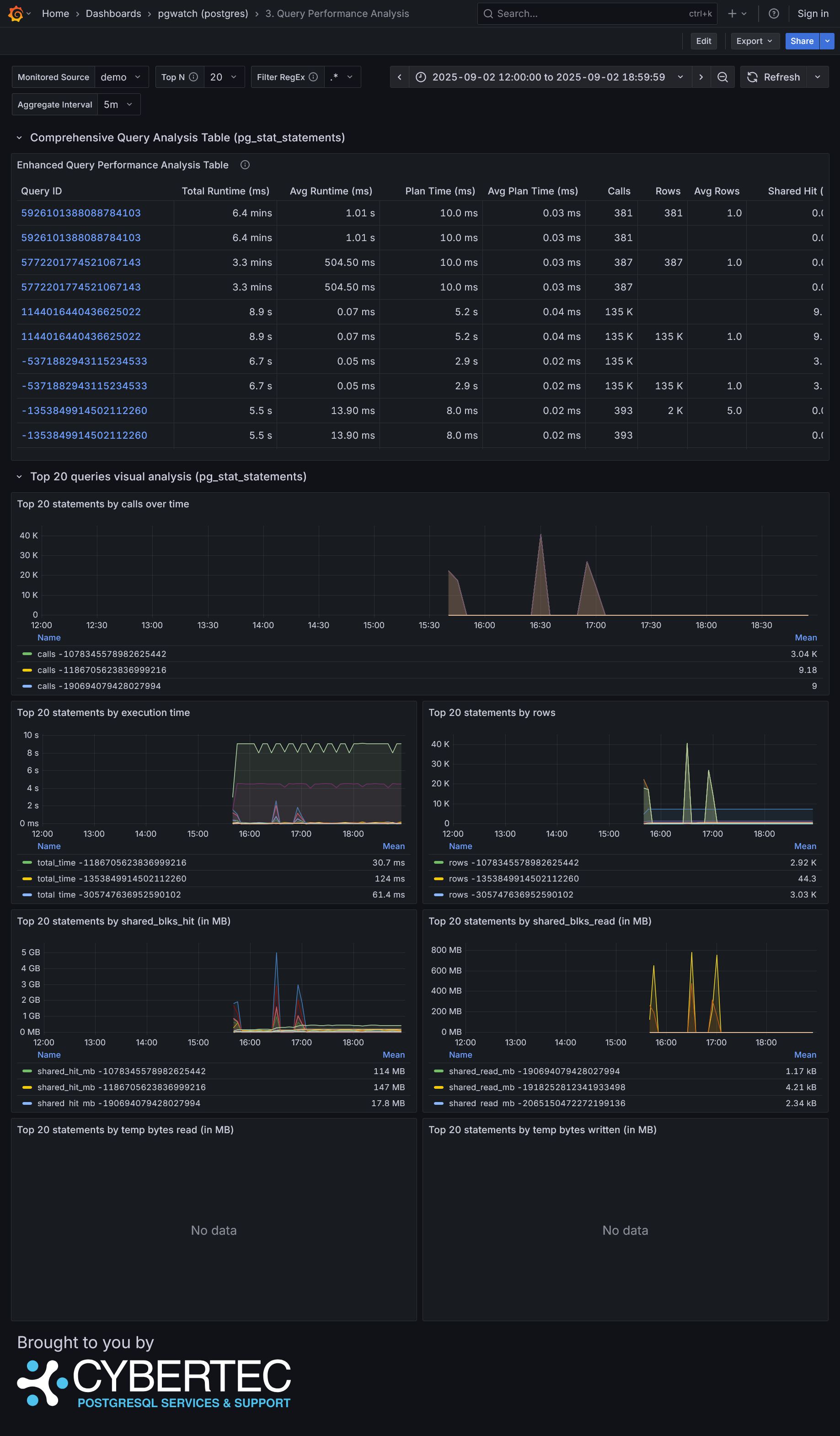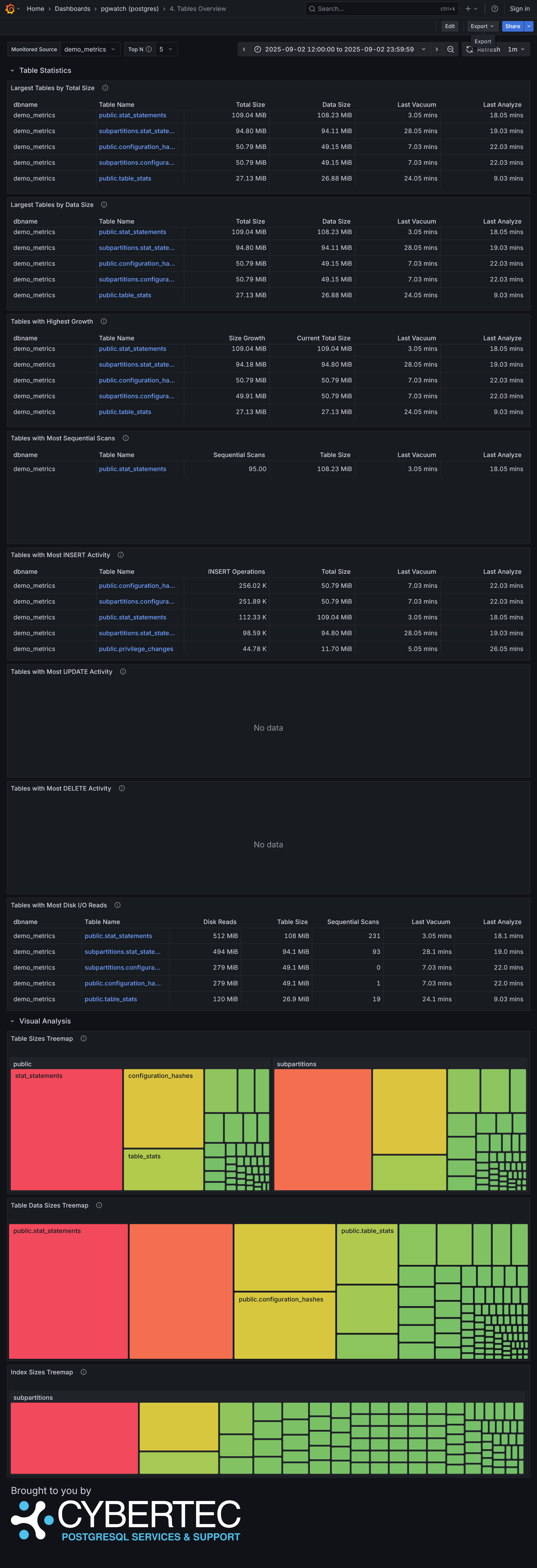 The complete list of available dashboards can be found in the official repository under /grafana.
