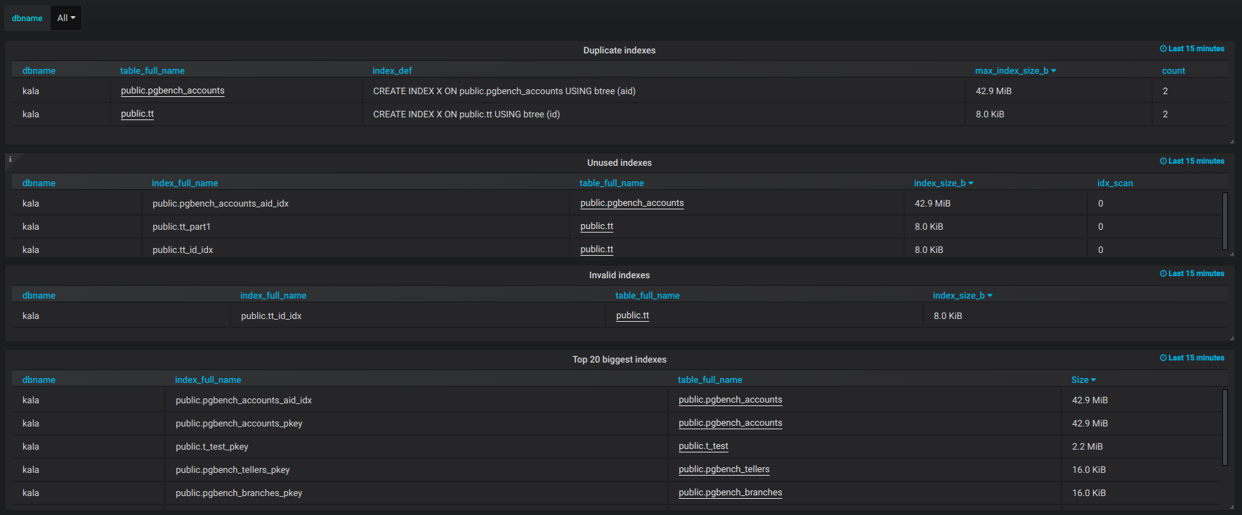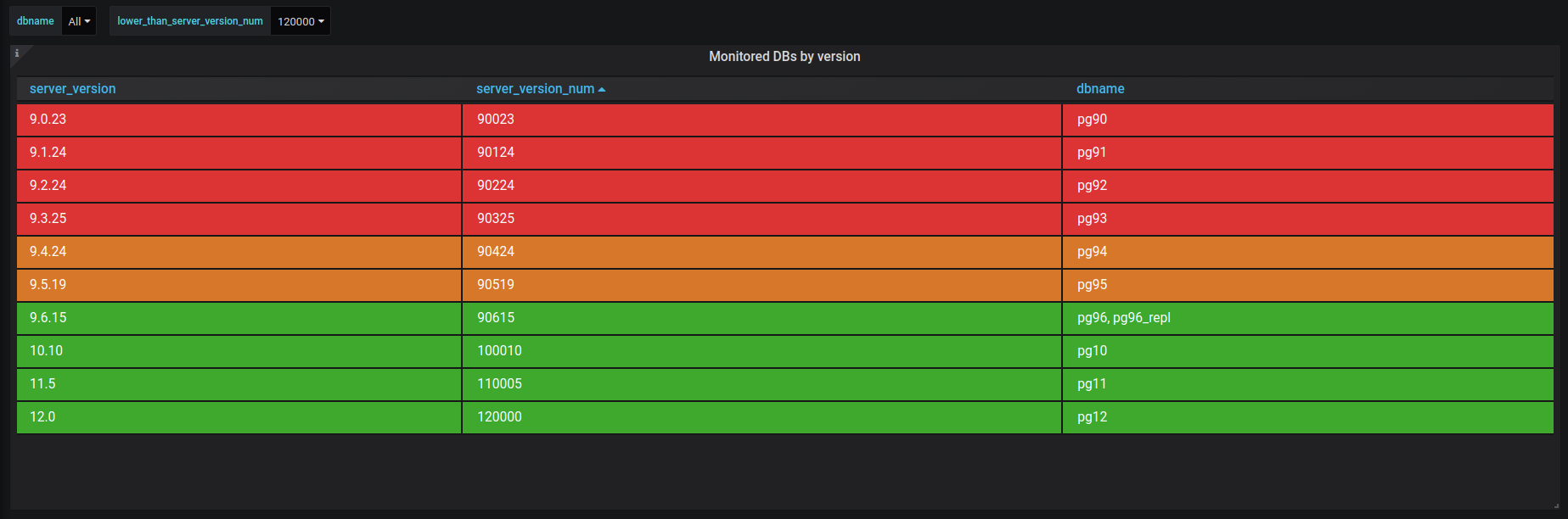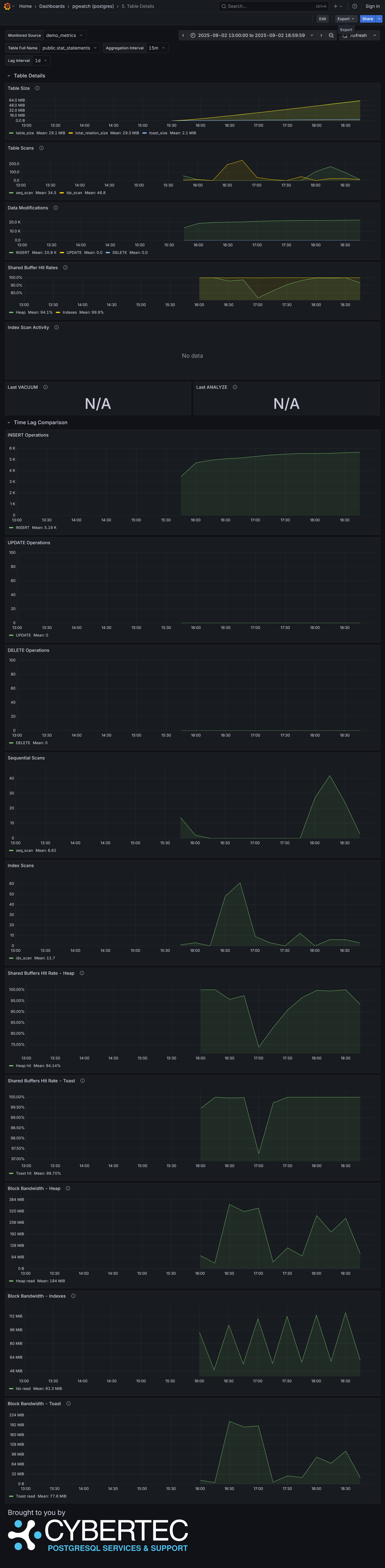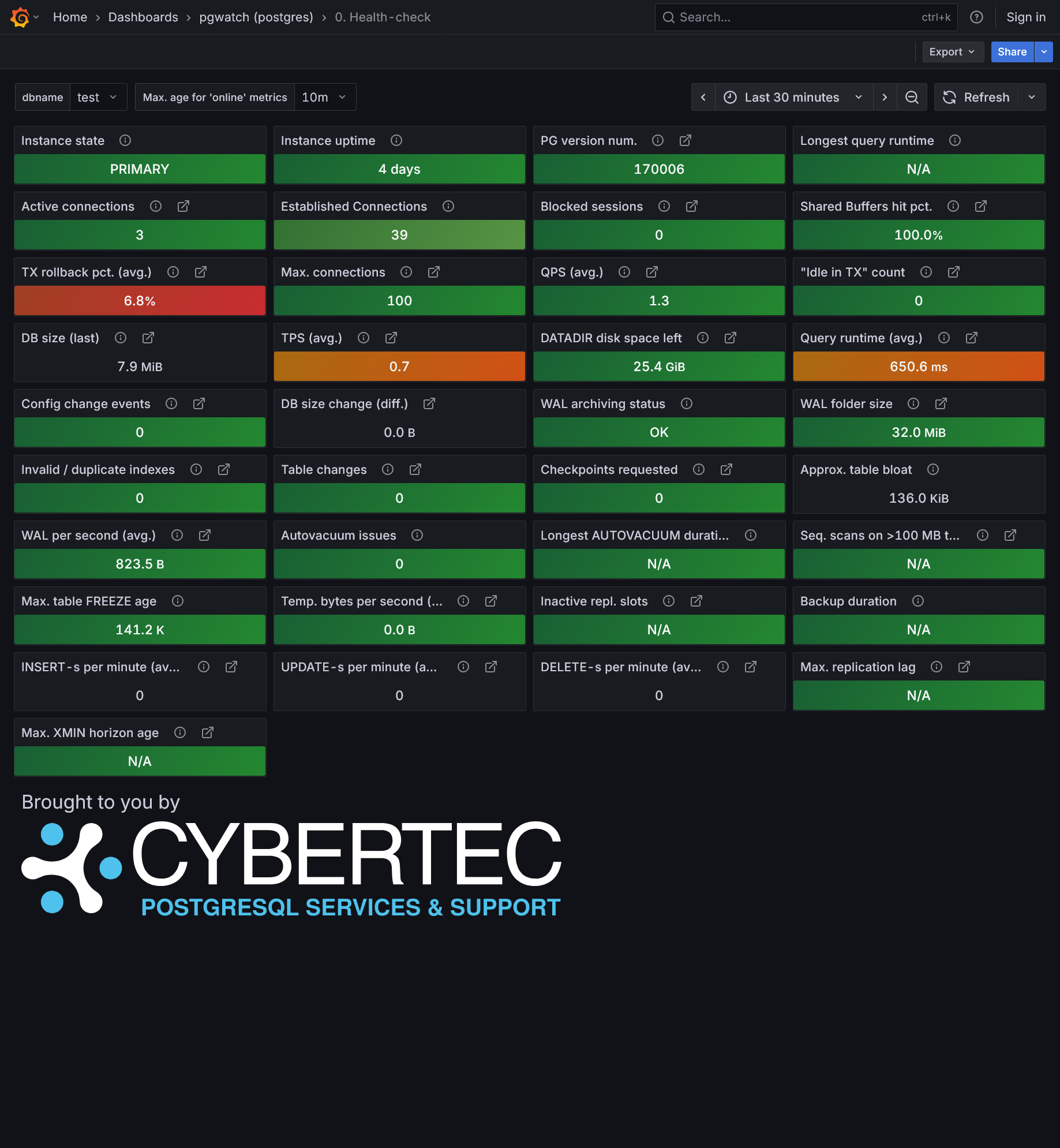 The complete list of available dashboards can be found in the official repository under /grafana.